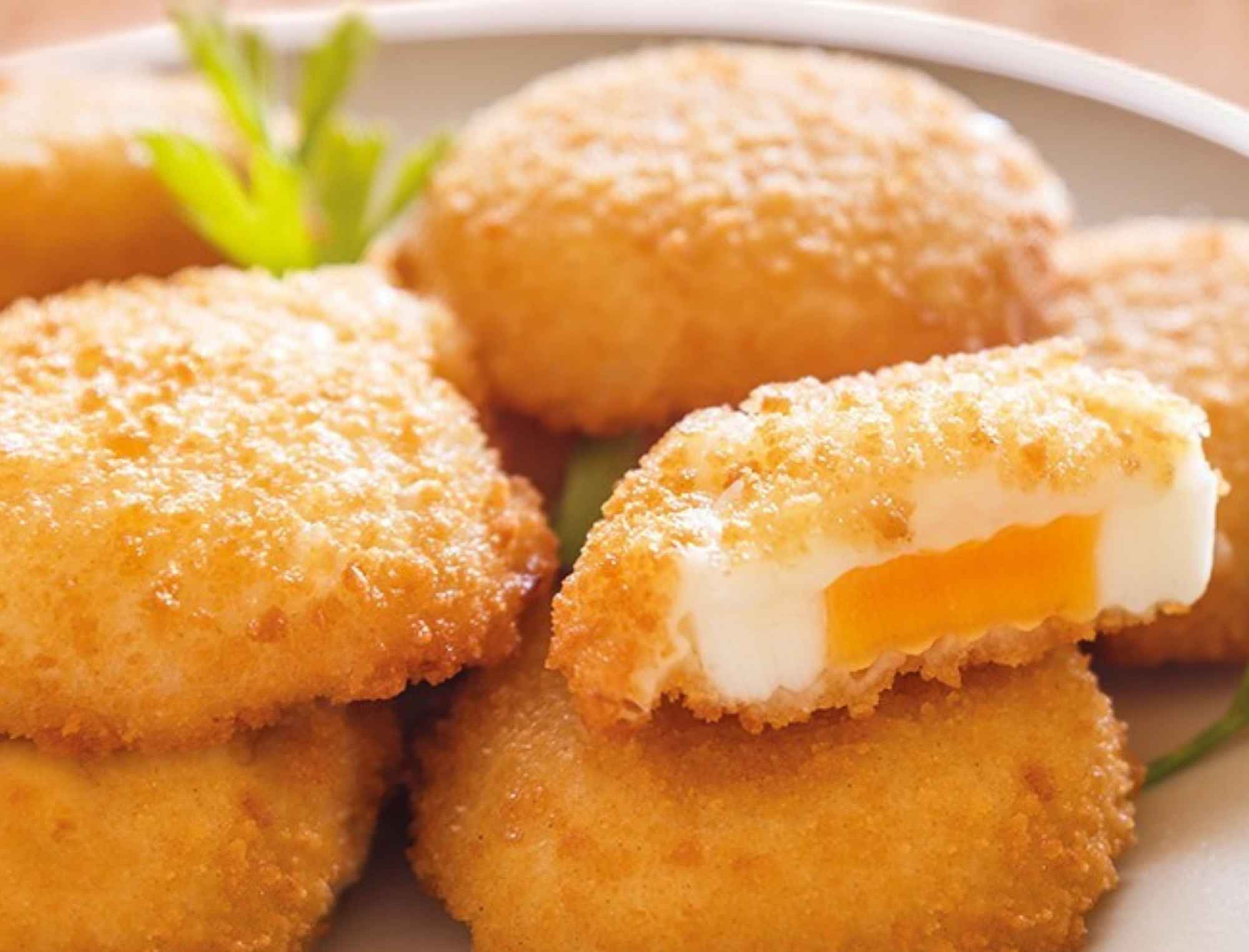 Huevo con bechamel empanado